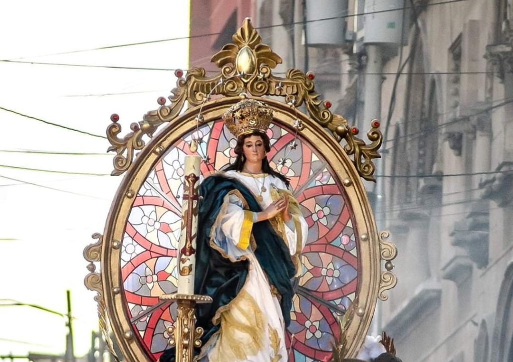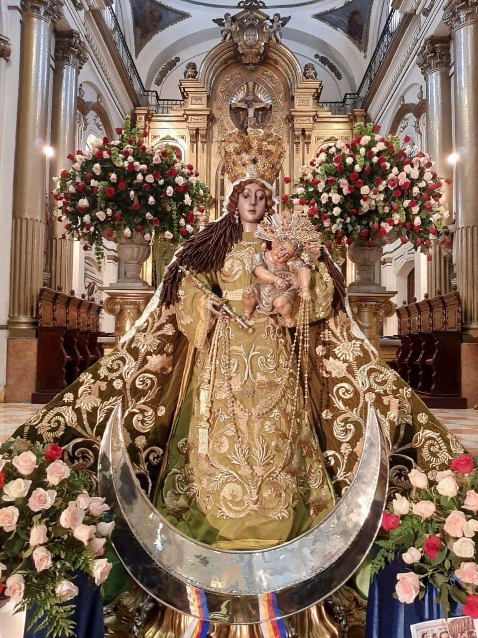 La Foto que te mostramos Arriba, corresponde a la Festividad de las Rosas 2020 ya que en el Primer Domingo de Mayo se realizaria la tradicional y Festiva Procesión con la Réplica de Nuestra Señora del Rosario por Motivo de la Festividad de las Rosas. La Santísima Virgen del Rosario descendió de su Camerin para bendecir al Pueblo Católico.